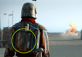 Amikor Boba Fett öltözékét Cobb Vanth hordta, megfigyelhető volt a hátirakétán egy irdatlan foltozás: